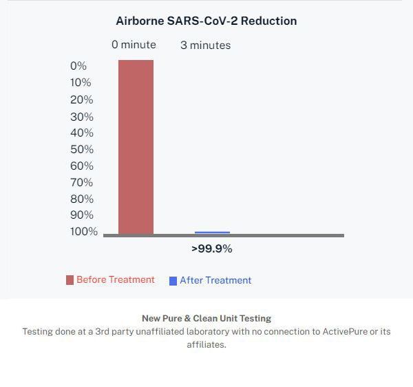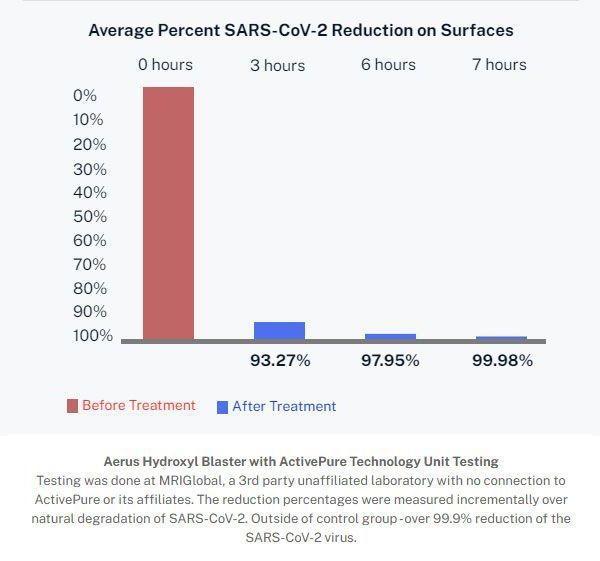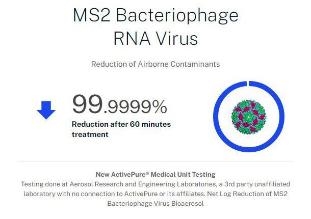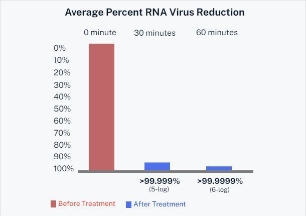Testing completed in August 2020 (surface) and December 2020 (airborne) has shown remarkable levels of reduction in the virus that causes COVID-19.